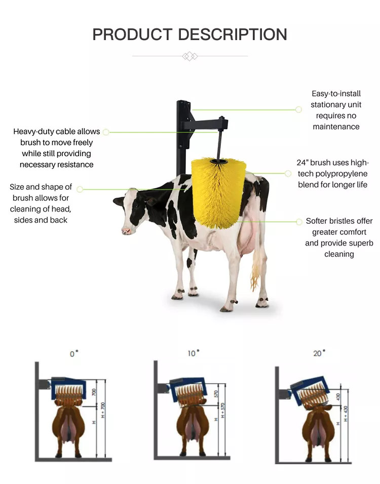 2. Nastavitelné úhly 0°/10°/20° vyhovují hospodářským zvířatům různých velikostí a umožňují čištění hlavy, boků a zad.