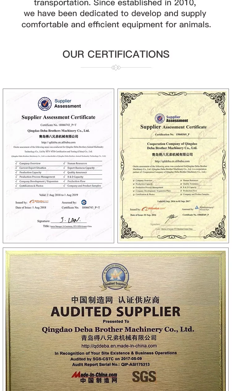Deba Brothers® je předním výrobcem prémiových podlah SMC v Číně. Naše podlahy SMC se snadno instalují, jsou kompatibilní s farmami všech velikostí a jsou mimořádně odolné díky vysoce kvalitním surovinám a preciznímu zpracování. S léty prověřenou popularitou mezi zemědělci po celém světě poskytuje tento produkt trvale vynikající a spolehlivý výkon.